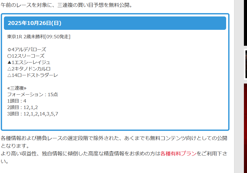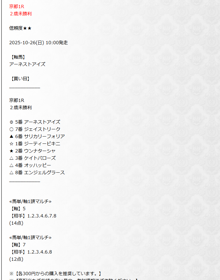 少頭数のレース選んでおいてものの見事に外した(笑) まじでクソサイト