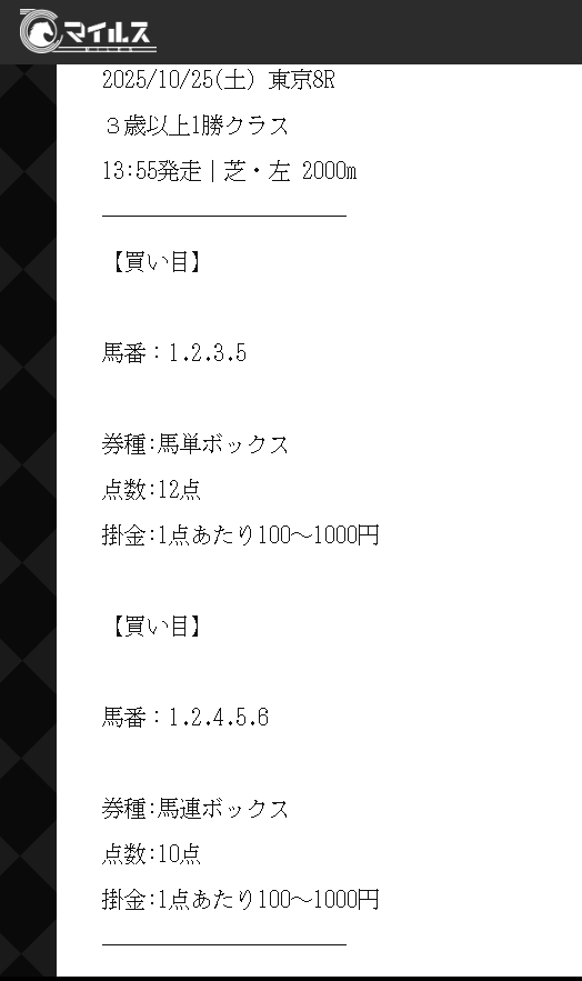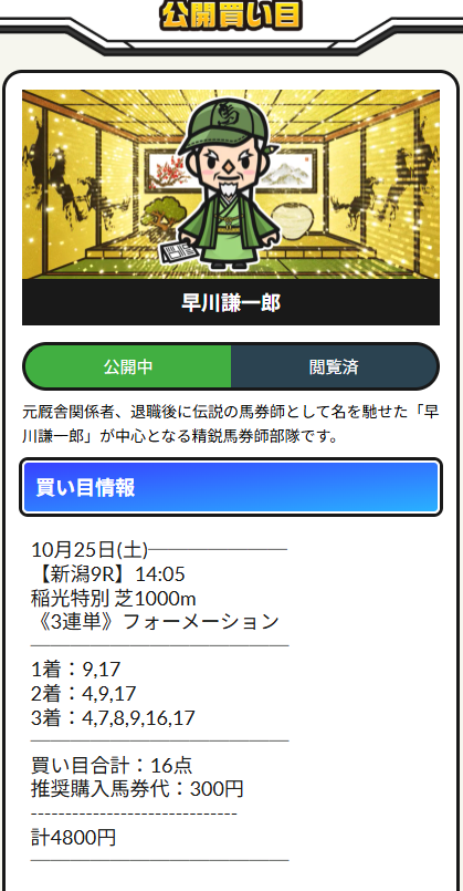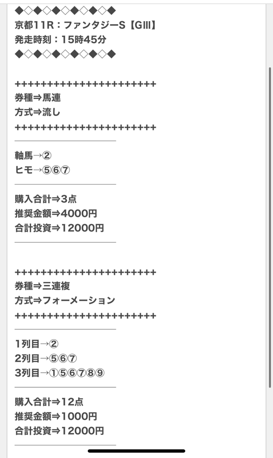 約束された万馬券の買い目が届く!