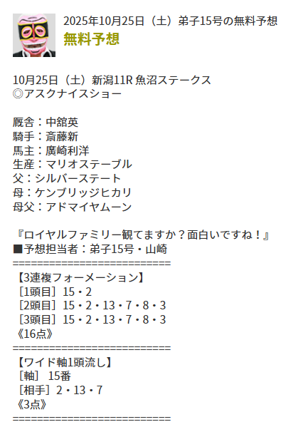 これ朝っぱらから他人の予想で外して腹立ったやつw