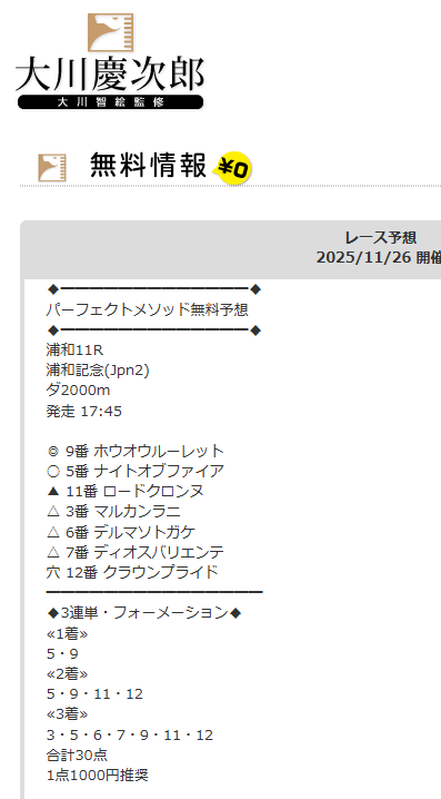 私も参加していて浦和記念的中貰えましたた。 ここは平日、毎日地方競馬買い目(無料)出しているので平日のお小遣い稼ぎに愛用させてもらってますよ。