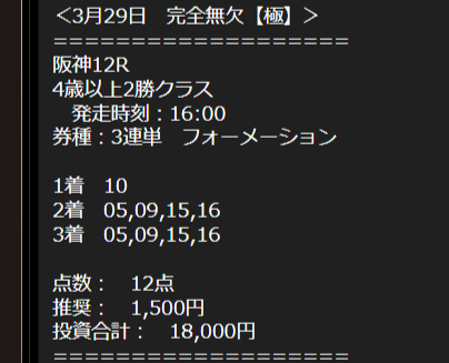 そして翌日、3連単買い目だけ買いましたが弥生賞&LINE限定無料情報、阪神9R連続的中で3万8730円獲得。