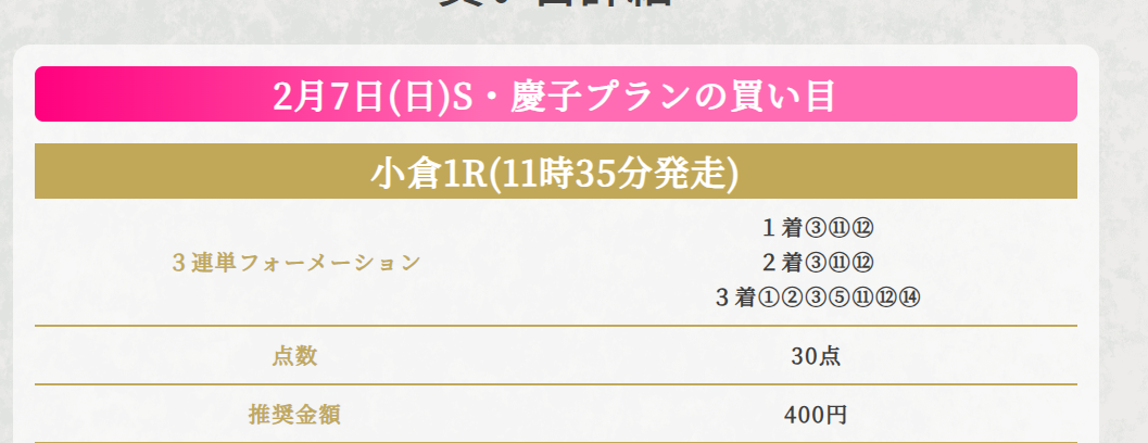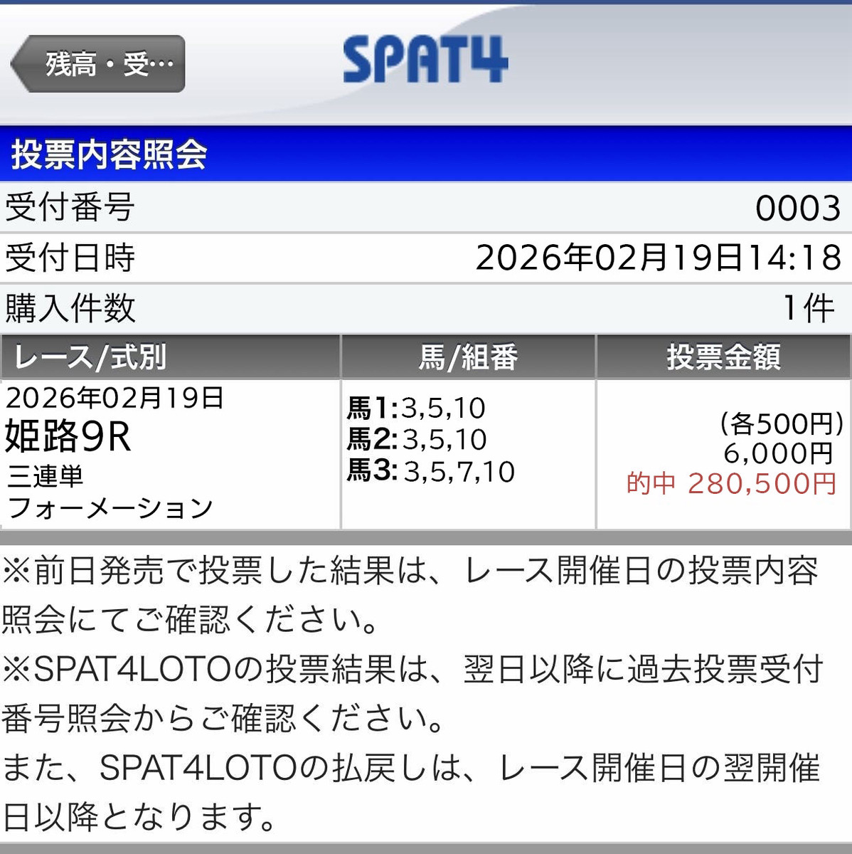 雪の関係で開催中止、開催日変更で予想大変だったと思うけど 小倉の高配当爆誕レース的中に満足してます。 3Rねん単1905.4倍なんて競馬玄人、競馬歴10年以上でも当てられないっす。 76万2160円ありがとうございました。 今年は金杯からなかなか勝てずようやく高配当が掴めました、最近は個人の予想には限界を感じております。。。