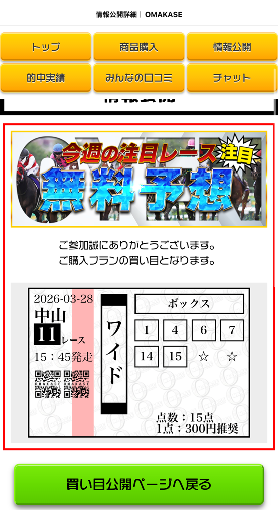 今週勝負レースを極秘公開中!