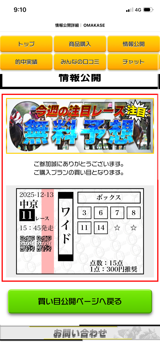 9人気+10人気+3人気の順をドンピシャ的中、無料でいいのかこの予想?